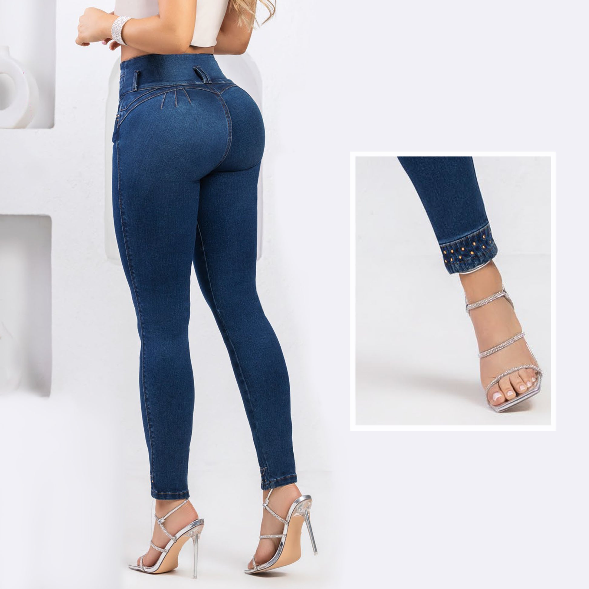 Este jean combina estilo y confort en una prenda versátil para cualquier ocasión. Su efecto push-up y el detalle en el dobladillo le da un toque único y moderno.