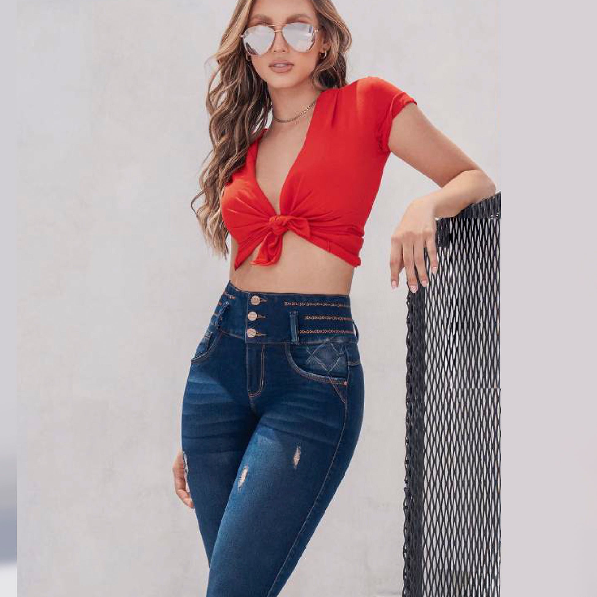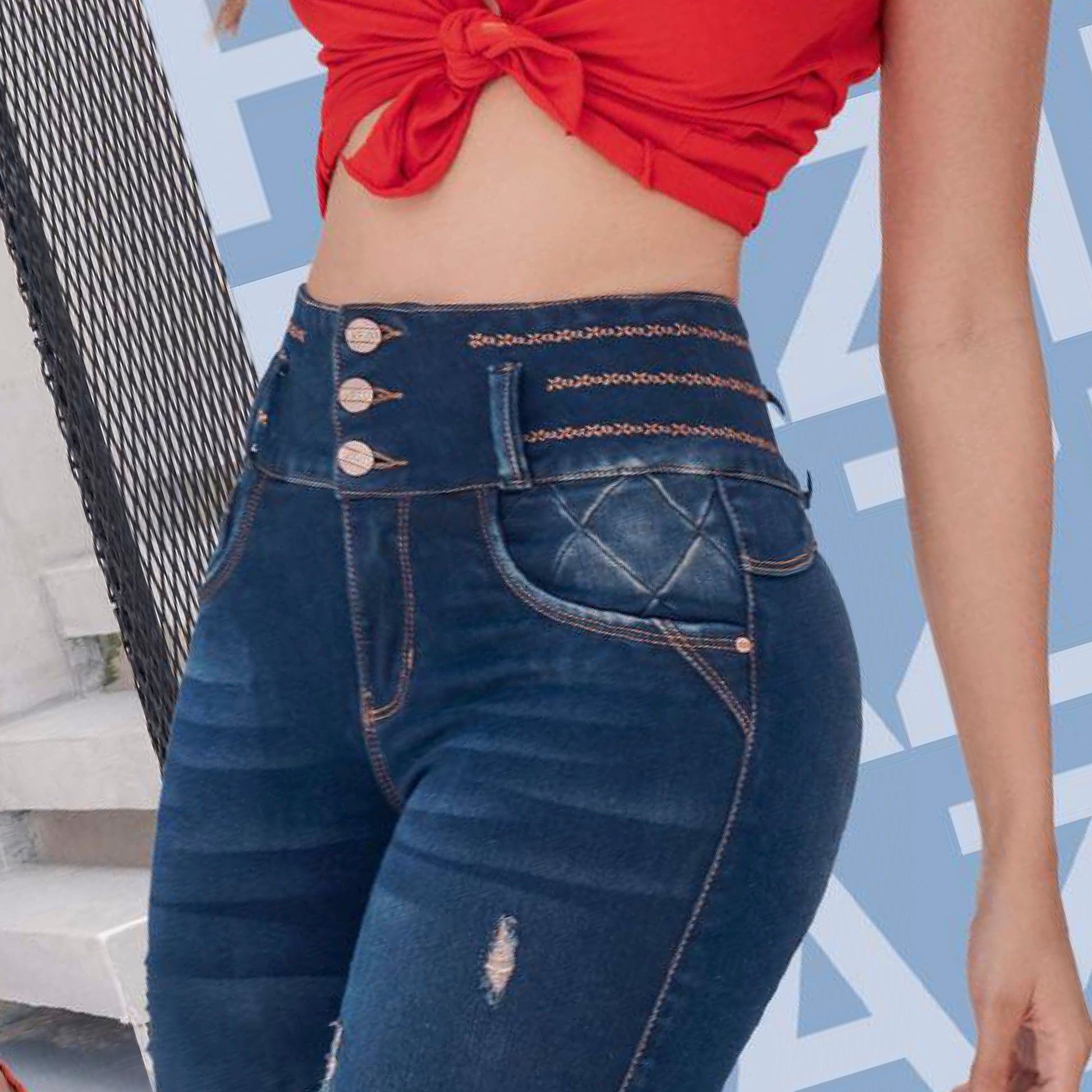 Este jean combina estilo y comodidad con su efecto push-up que realza tu figura. Su diseño en azul petróleo con detalles bordados añade un toque sofisticado. El efecto desgastado le da un aire moderno y versátil, ideal para cualquier ocasión.