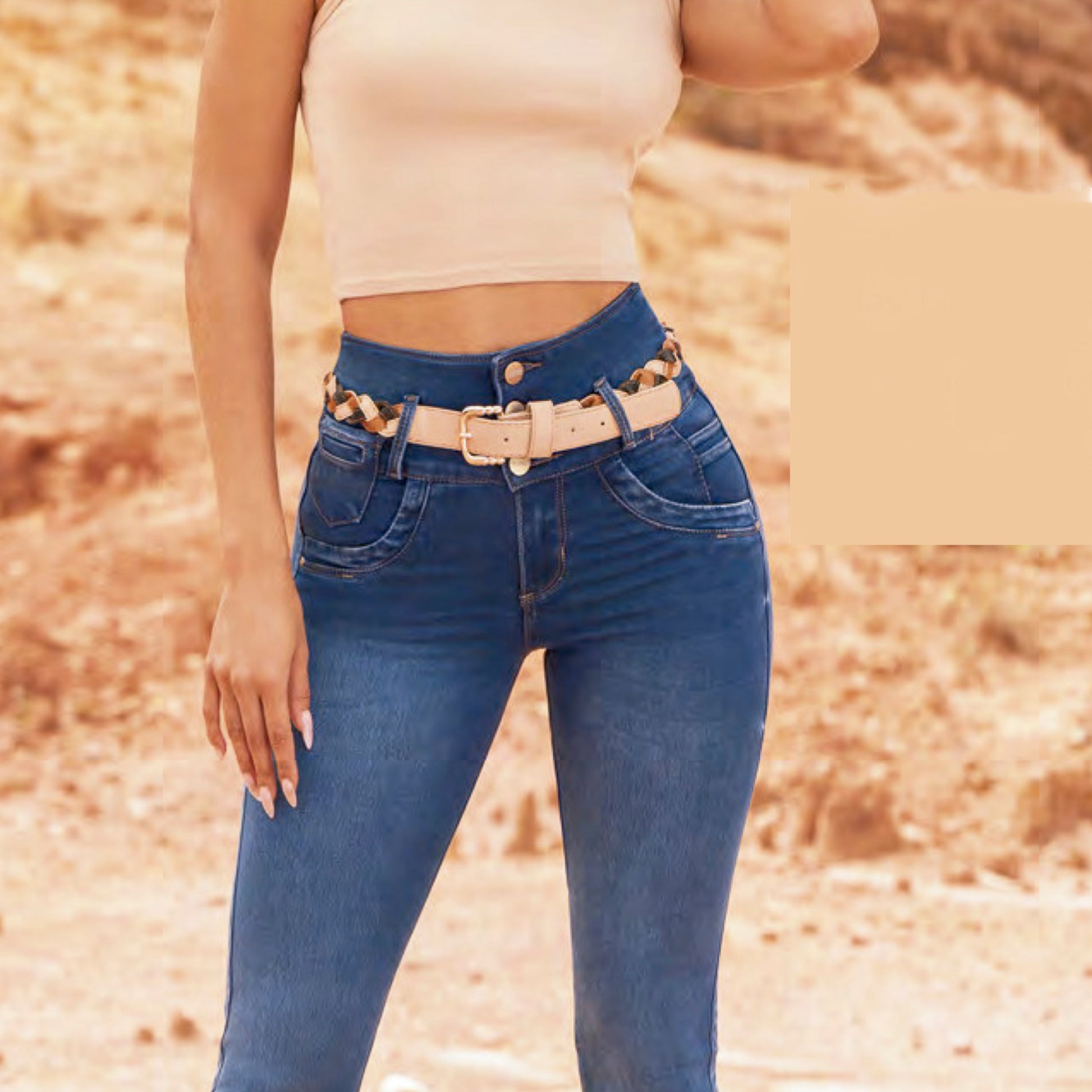 Este jean skinny con pretina anatómica y tres botones te brinda un ajuste perfecto y cómodo. El efecto push-up realza tu figura, mientras que el detalle en los bolsillos traseros añade un toque de estilo. Perfecto para un look moderno.