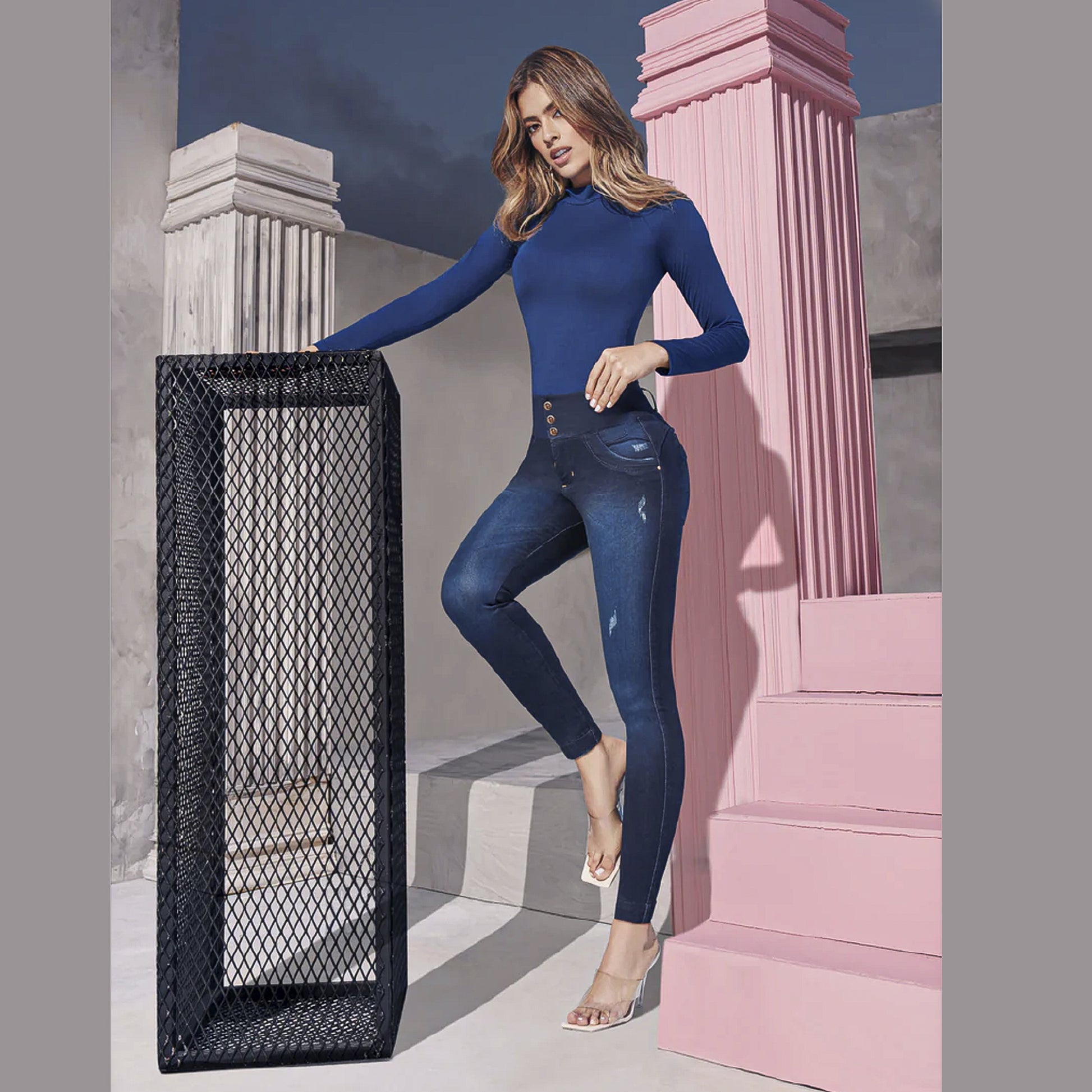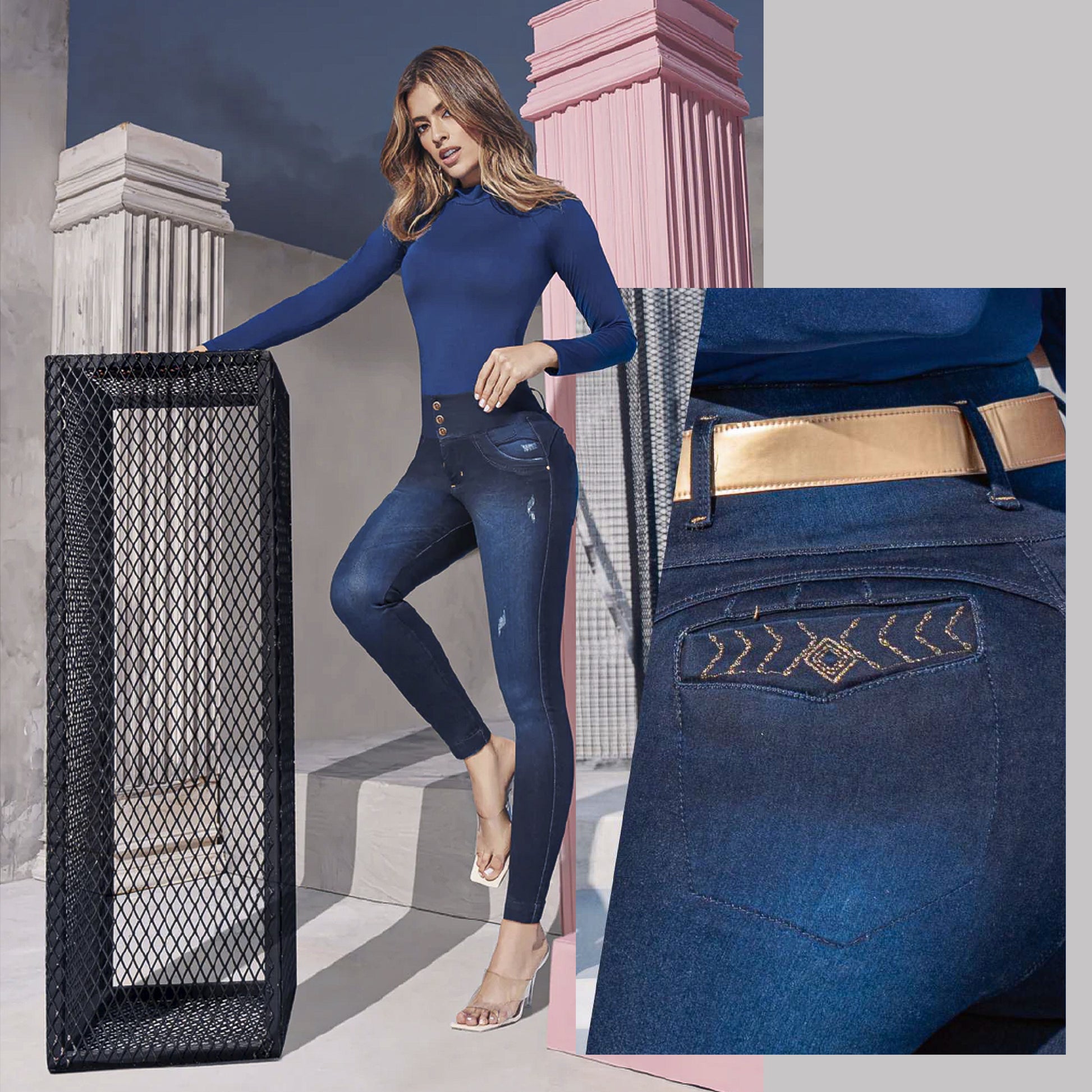 Este jean combina un ajuste cómodo con detalles elegantes. La pretina anatómica y los acentos dorados en la costura añaden un toque sofisticado.