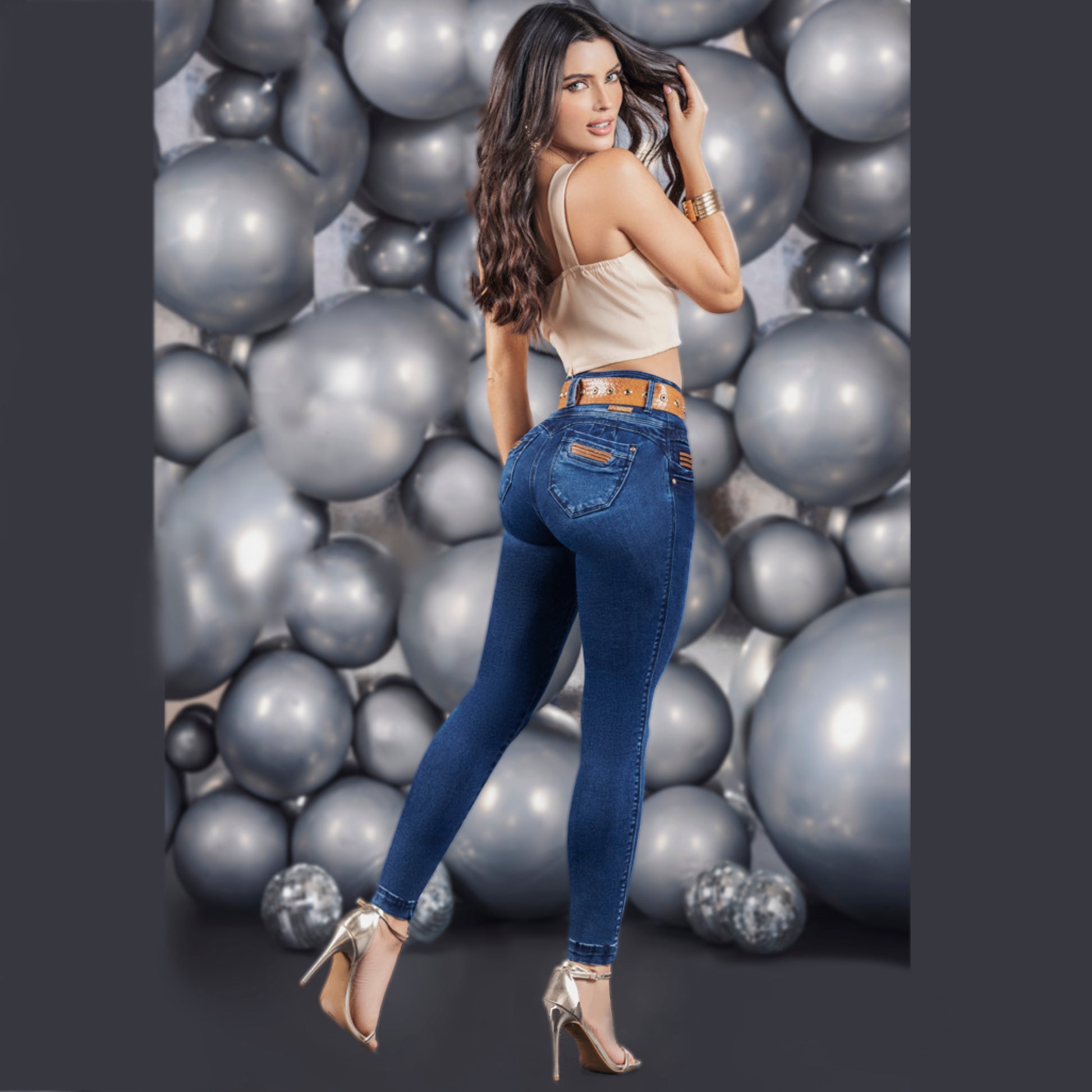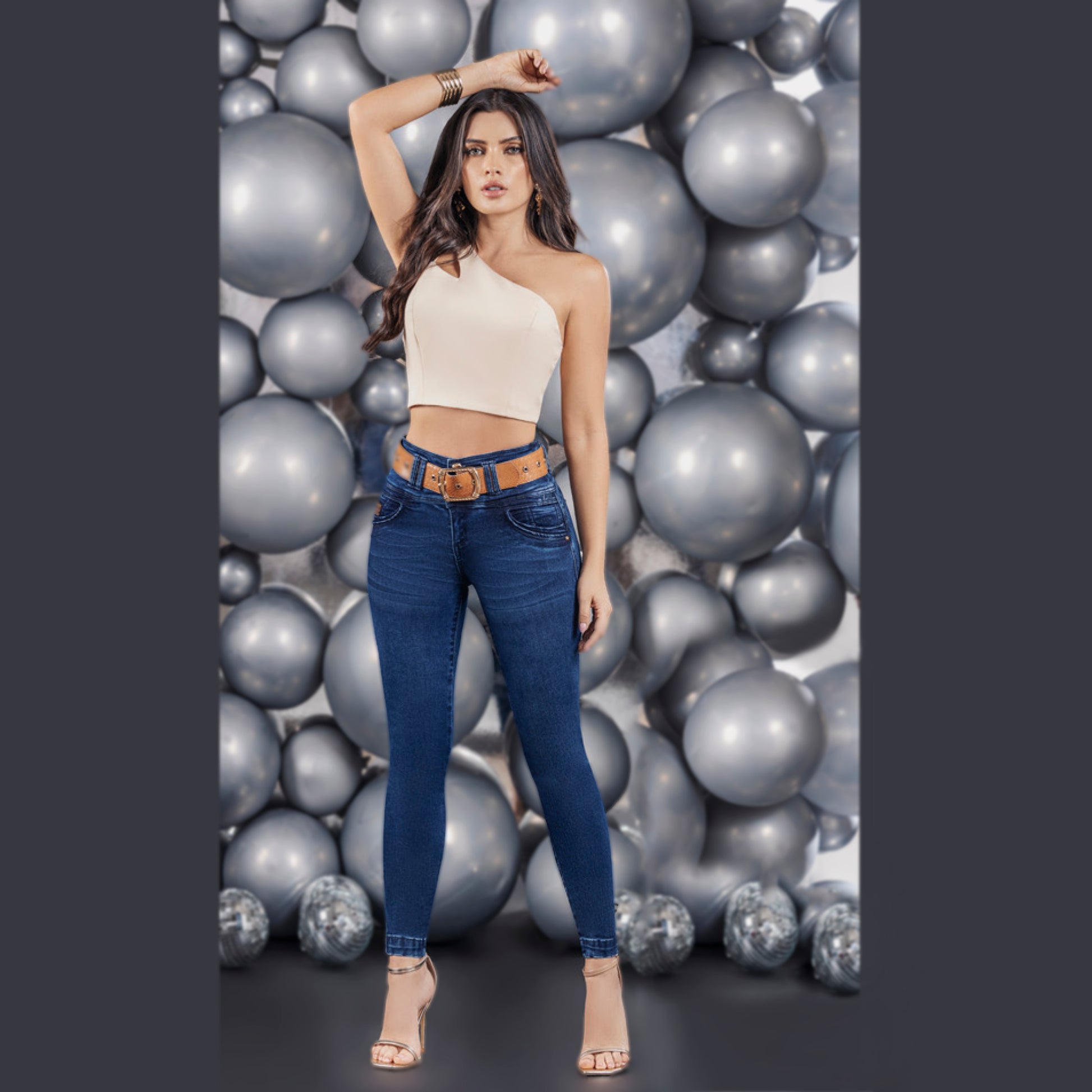 Este jean te ofrece un ajuste cómodo y favorecedor con un tiro alto que realza tu figura. Mientras que el diseño de tiro alto estiliza tu silueta. La tela piel de durazno aporta una textura suave y elegante, ideal para un look sofisticado y versátil.