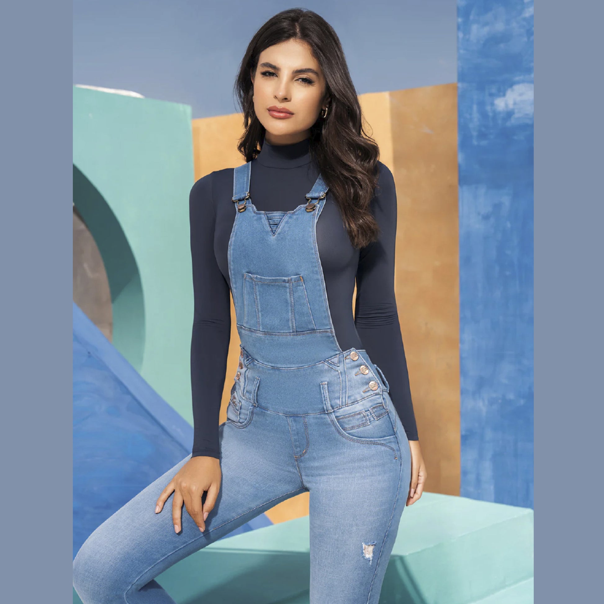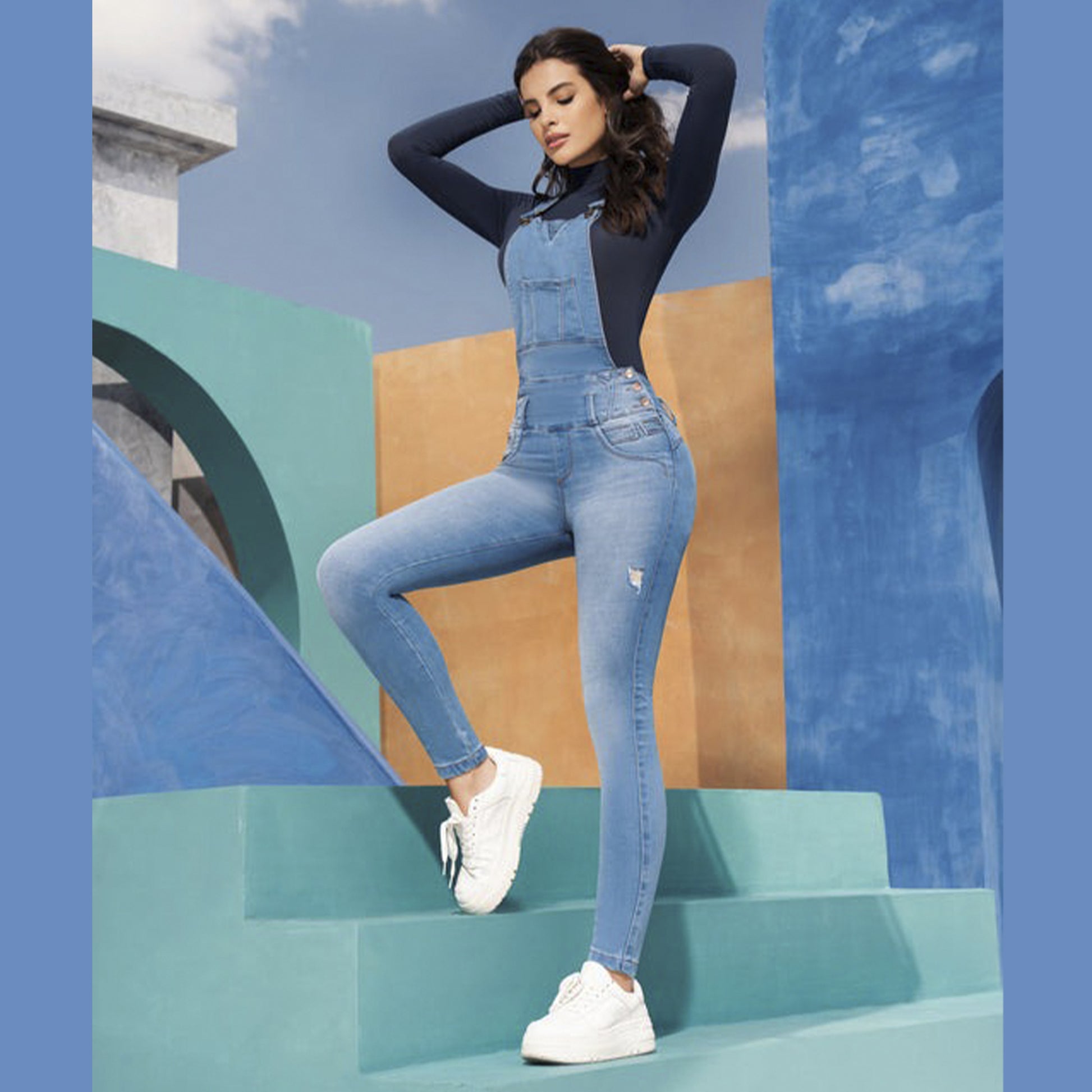 Este overol licrado te ofrece una silueta que te hará sentir cómoda y segura, con el toque de estilo de los desgastes que lo hacen único. ¡Perfecto para un look casual y moderno!