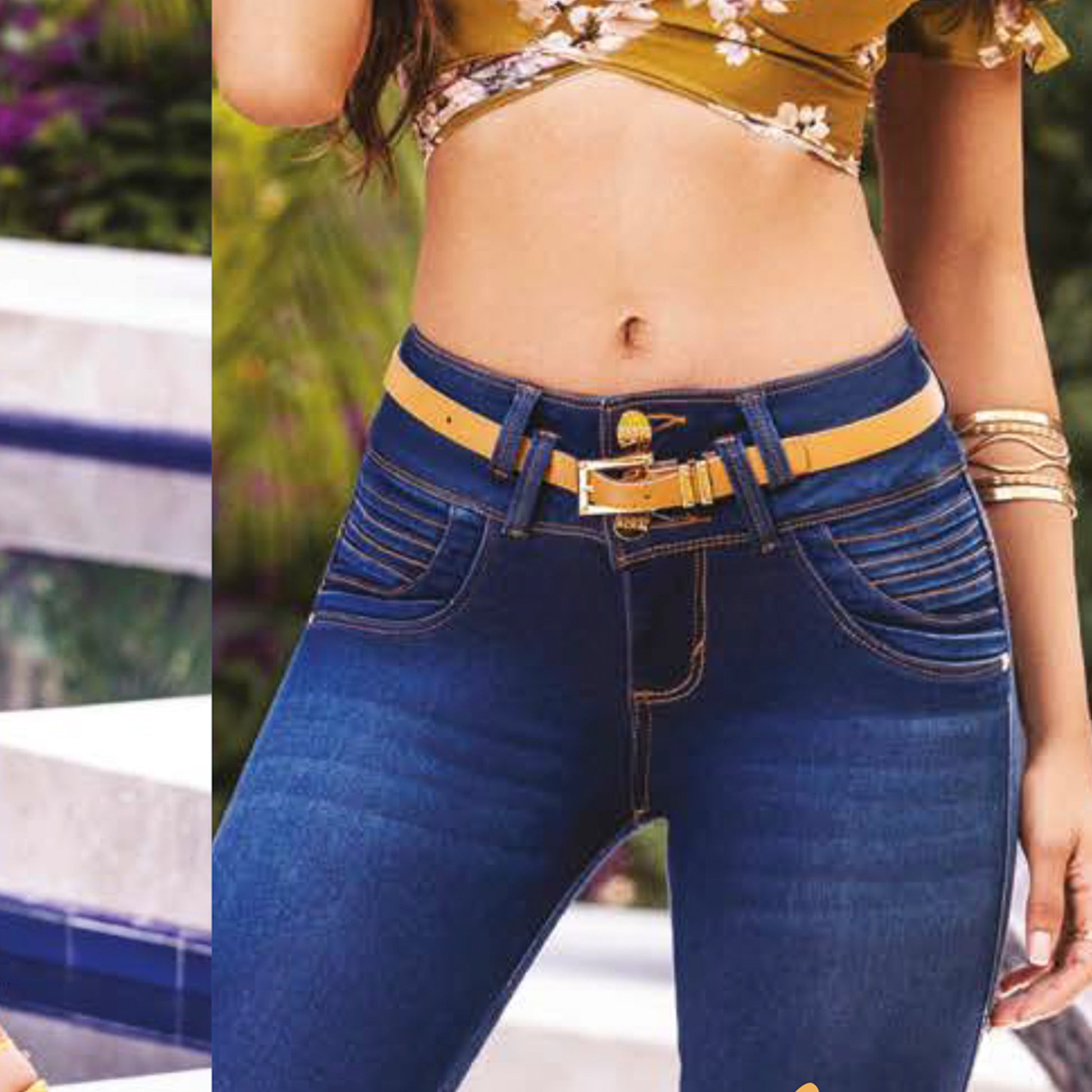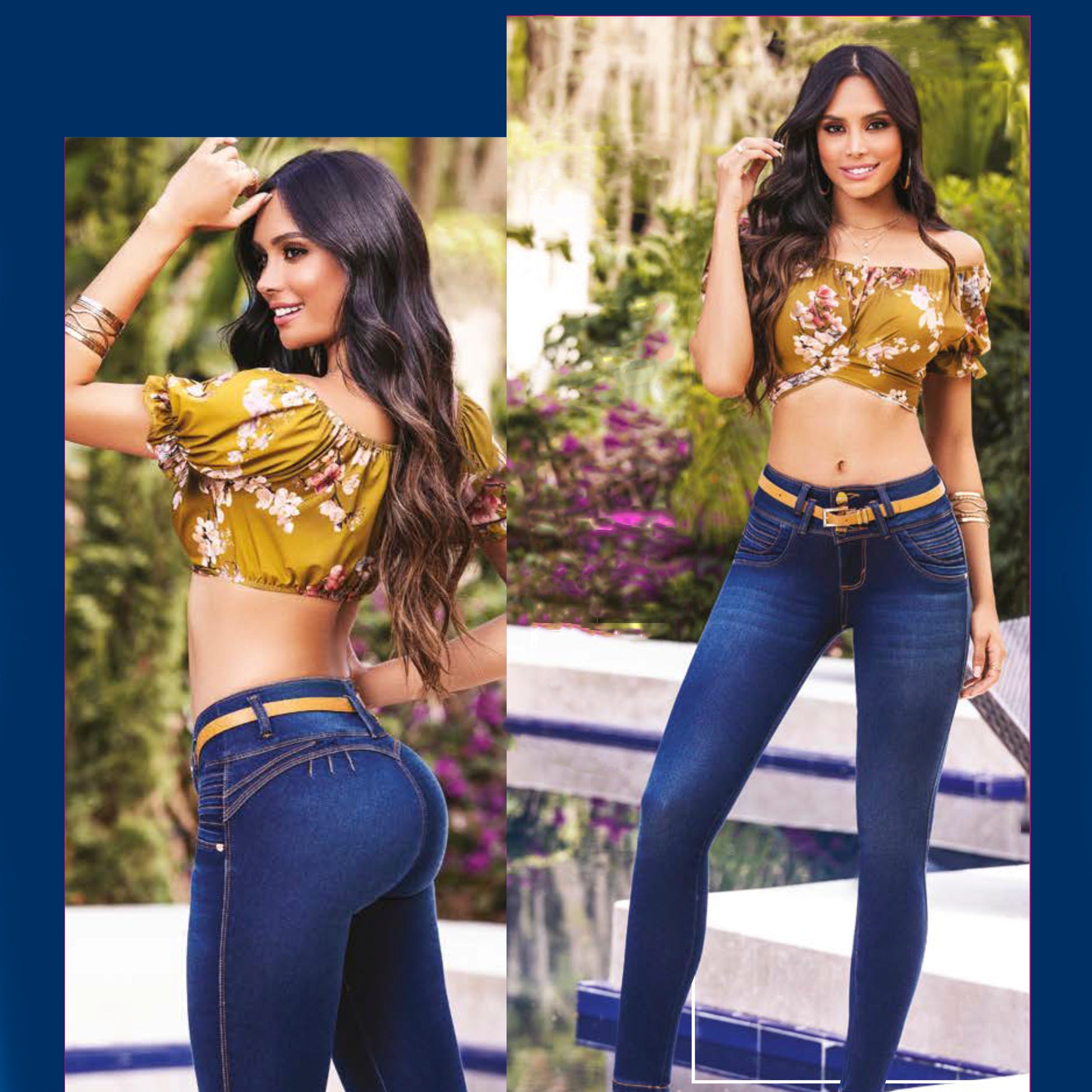 Este jean combina sofisticación y comodidad en un diseño moderno. Su efecto piel de durazno en color teal le da un toque único y elegante. El ajuste push-up realza tu figura, mientras que su diseño sin bolsillos crea un acabado estilizado y favorecedor.