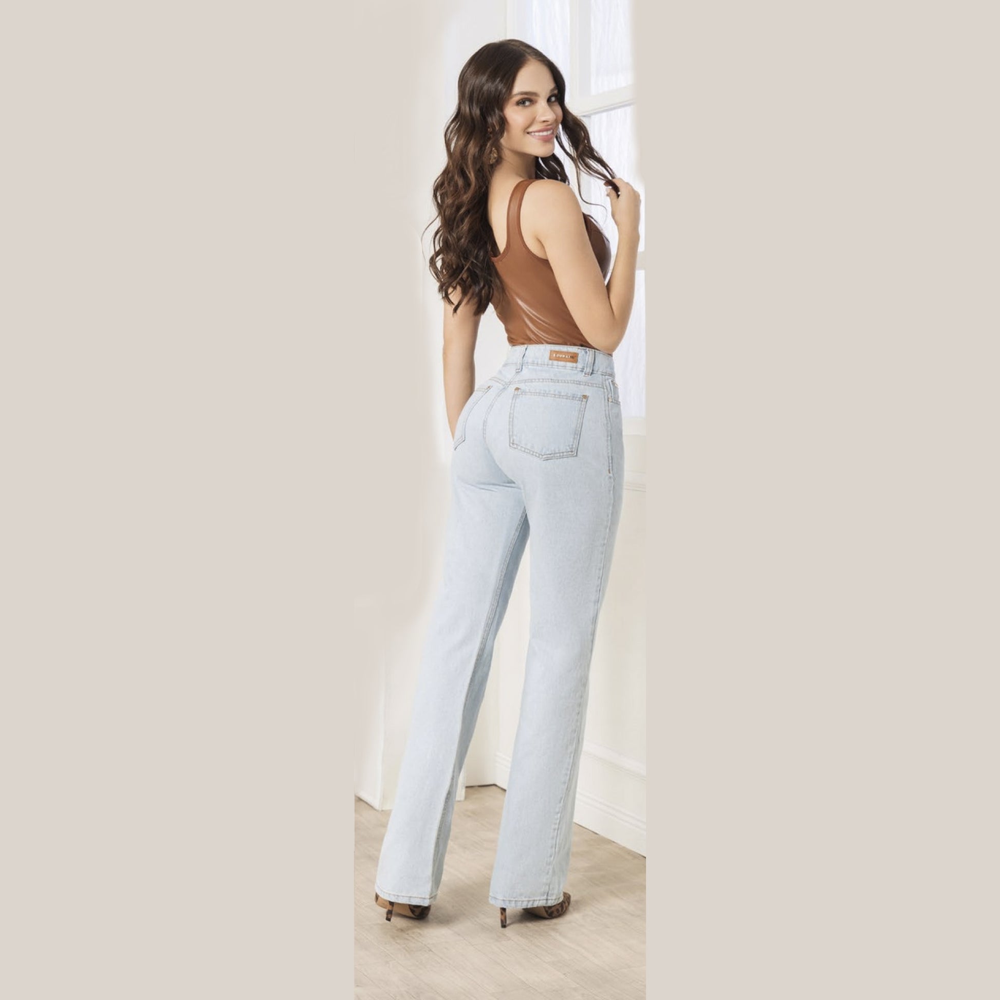 Este jean combina el estilo clásico de los jeans norteamericanos con un efecto push-up que realza tu figura. Su tela rígida ofrece un ajuste sofisticado y duradero, mientras que la bota recta le da un toque moderno.
